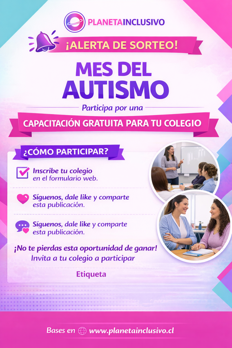 En abril, mes de la concientización del autismo, en Planeta Inclusivo queremos que esta conversación llegue más lejos y pueda transformarse en una acción concreta dentro de las comunidades educativas de la provincia de Llanquihue. Por eso abrimos este sorteo para que un colegio pueda ganar una capacitación gratuita presencial